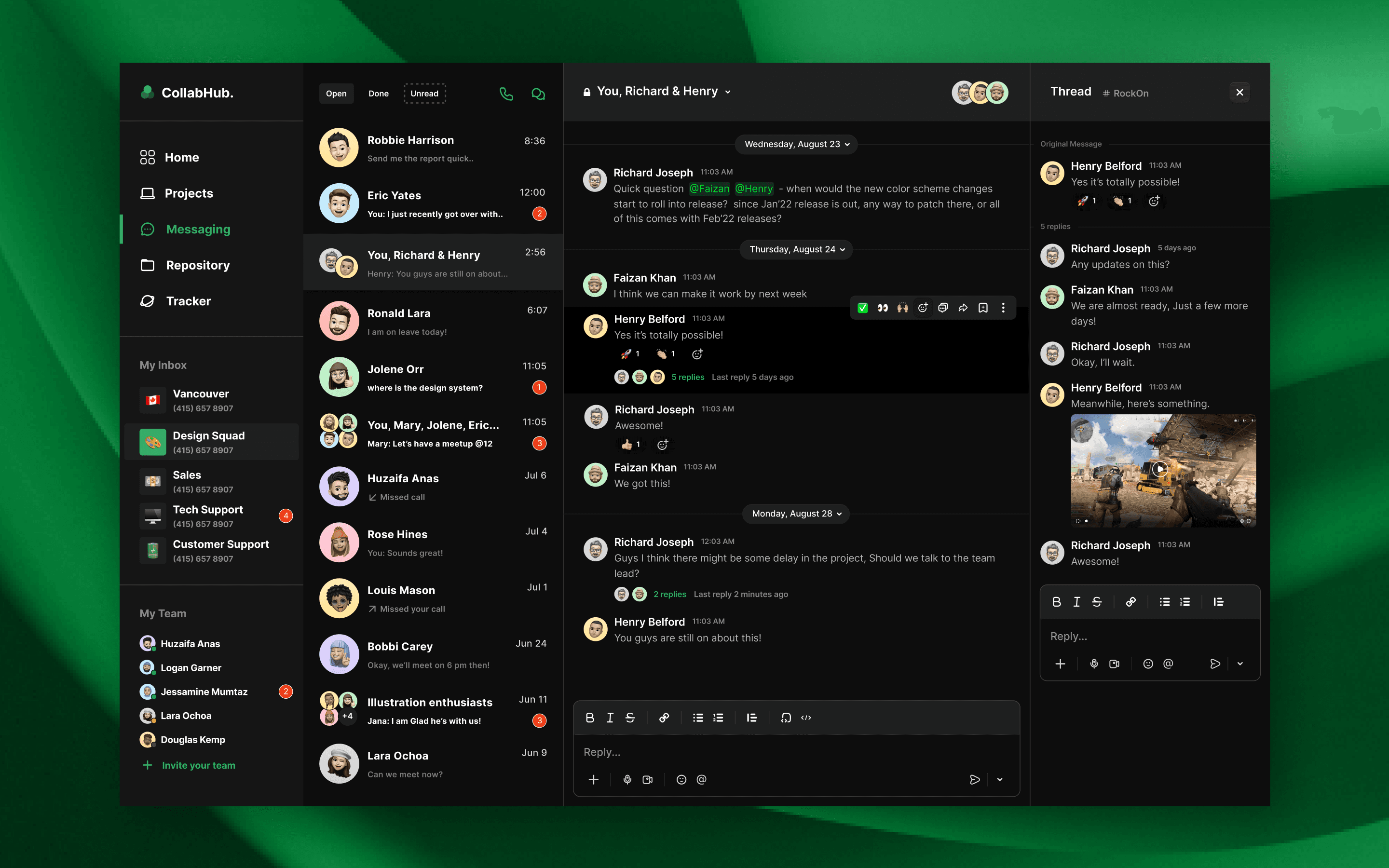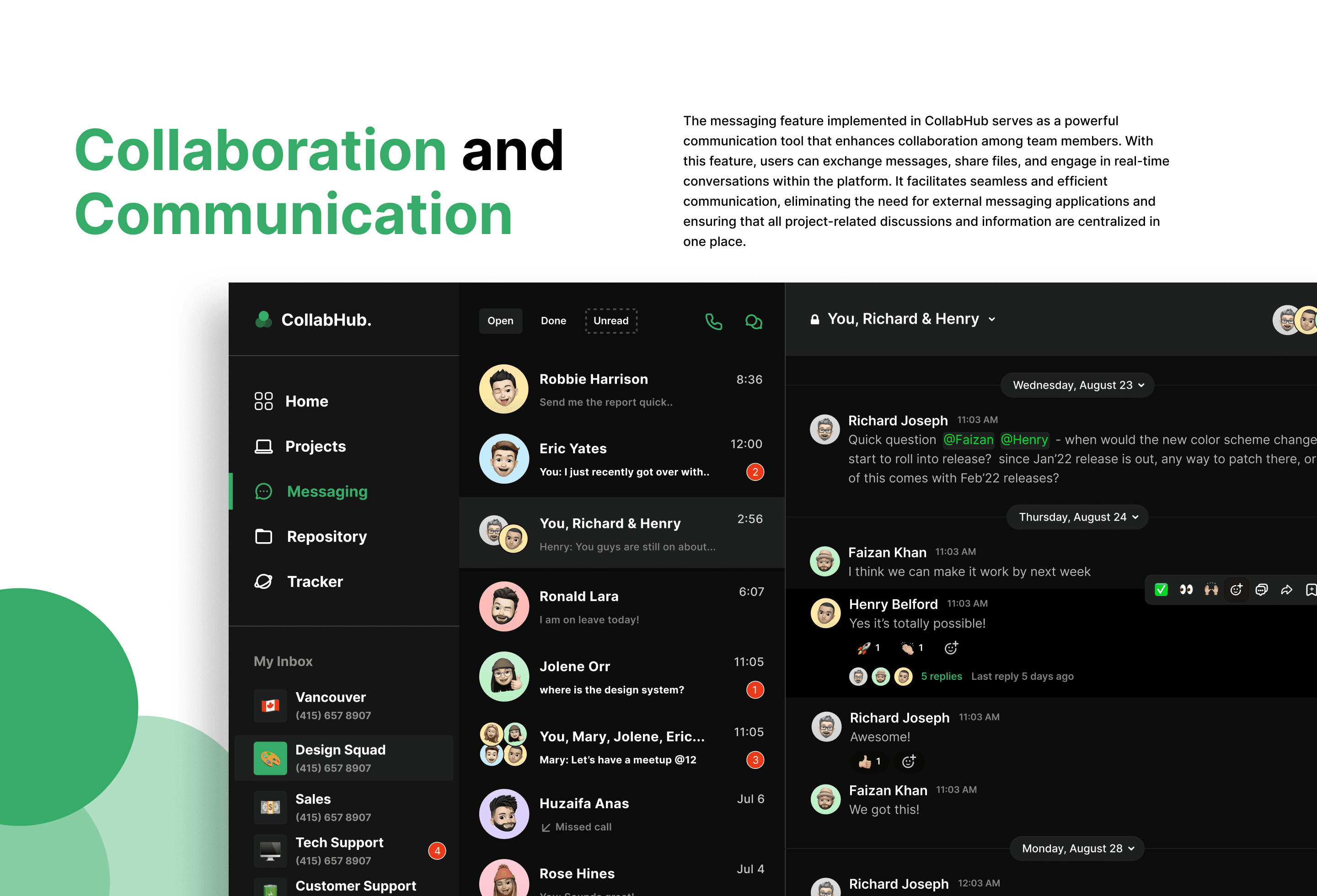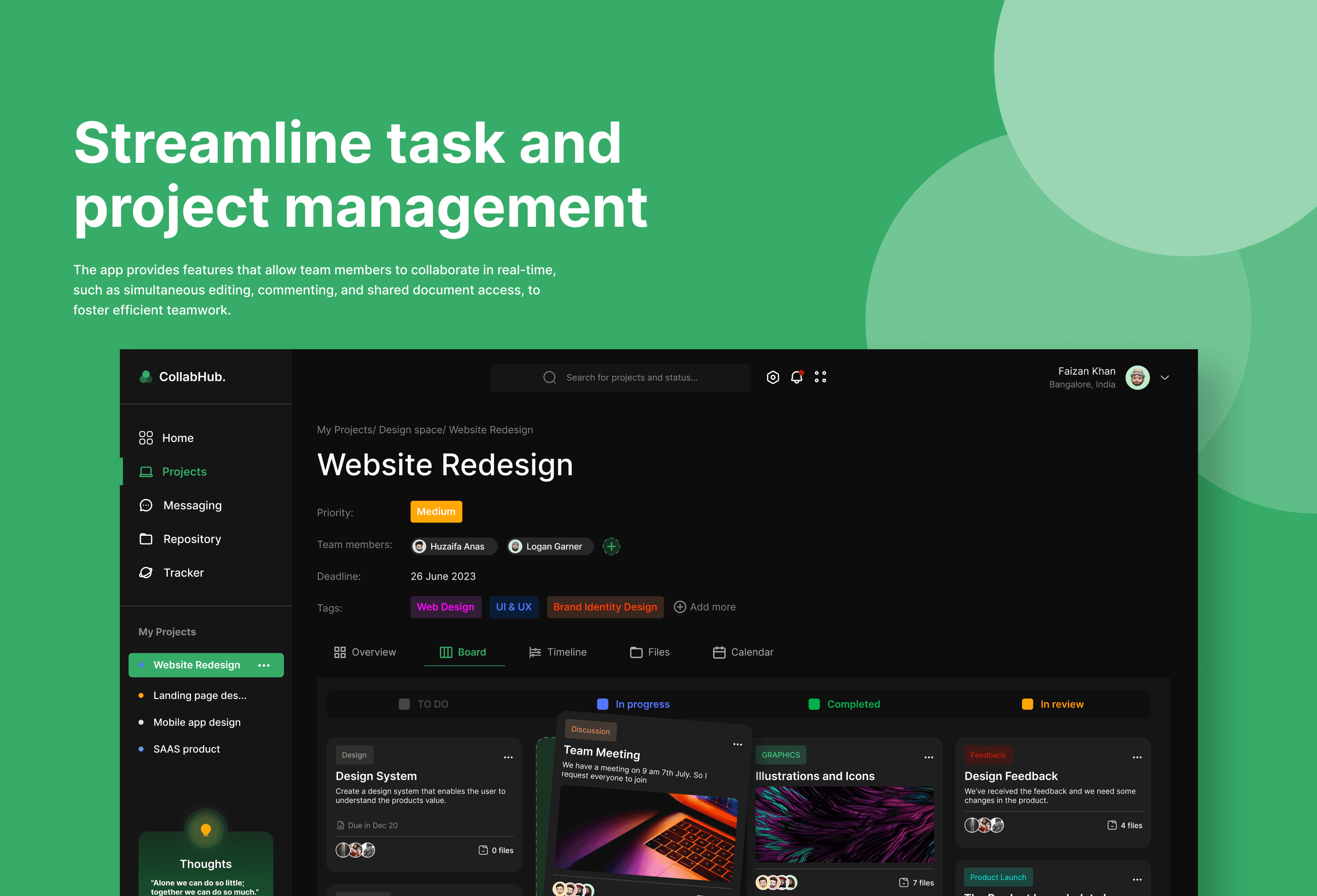 CollabHub is your all-in-one solution for seamless team collaboration. With our intuitive platform, teams can easily communicate, coordinate tasks, and track project progress in real-time. With introducing series of feature we are trying to implement a system for professionals to have a more productive and collaborative approach to their projects.